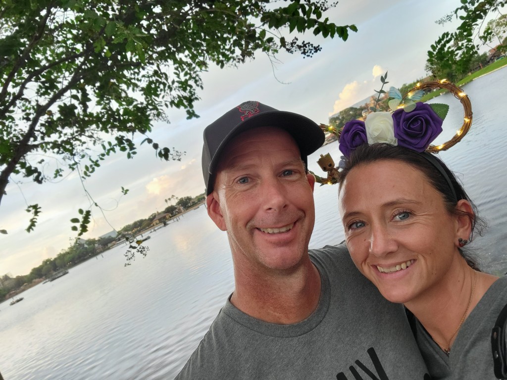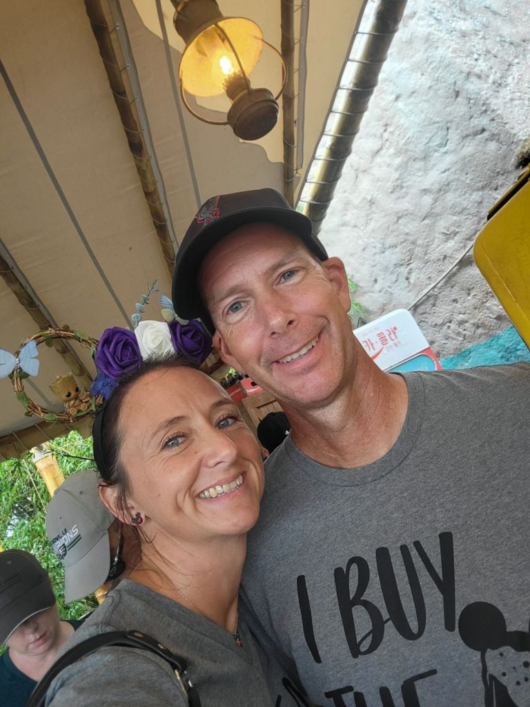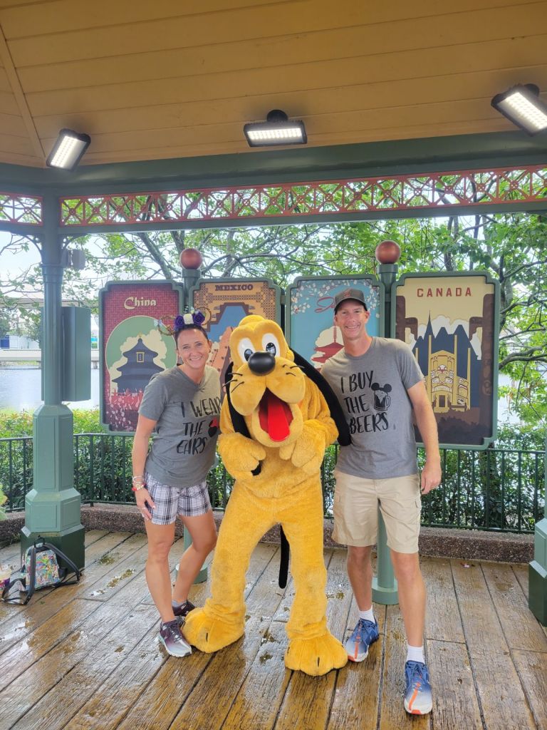 The third day, we were able to get a photo with Pluto in our matching shirts. His said “I buy the beers” and mine said “I wear the ears”. I actually bought new ears off Etsy for this trip and I got SO many compliments on them. They are so pretty with the purple (no shock) and white flowers and then there is a baby Groot in one of the ears. At night, there is a switch on the back where I can turn them on! Greg said it was good because he could always find me in the crowd. 🙂