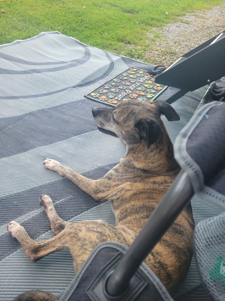 Tigger still tried to get at the llamas every once in a while, but we keep telling him he will get spit on. I think Tigger has claimed the campground as his own and the llamas close to the fence are encroaching on his territory that he is determined to guard. Silly dog, lol.