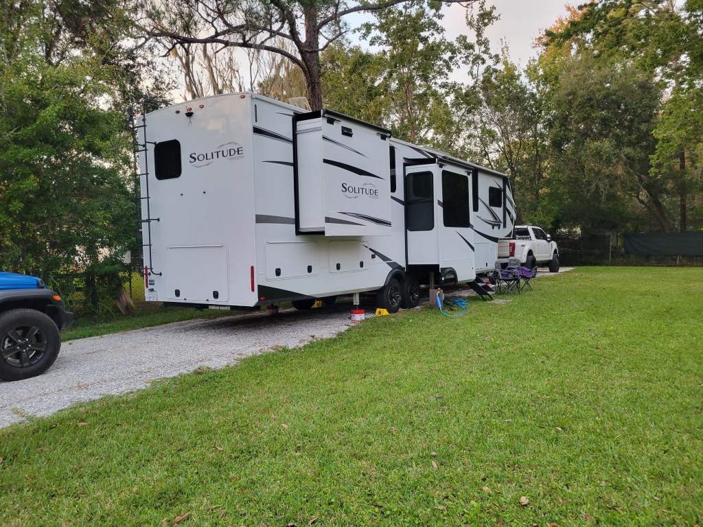 Getting to the campsite in Melbourne, we had to U-turn (purposefully) at the Ranger station to check in, then a switchback right turn into our area, finished with a textbook perfect back-into the site. While I might be driving the truck, I couldn’t have done these tricky maneuvers without Greg telling me where I’m clear, what way to turn the wheel, how much room I have, guiding me where is best to park, and putting the rig exactly where it needs to go. I was so impressed with how great we are as a team at doing this RV life, that I was jumping up and down when we pulled into Wickham Park. I’m so proud of us and it’s making every part of this journey so enjoyable!!
