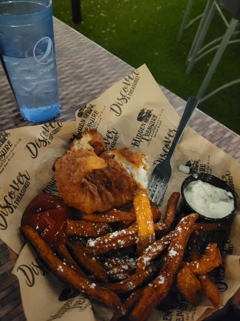 The first night, we dined at Hidden Treasure (they had a puppy patio!) and enjoyed Fish & Chips (Greg) and Jerk Mahi Tacos (Katie). We then took Tigger on a stroll around the Ponce Inlet Lighthouse and decided we need to come back in the day to see the inside.