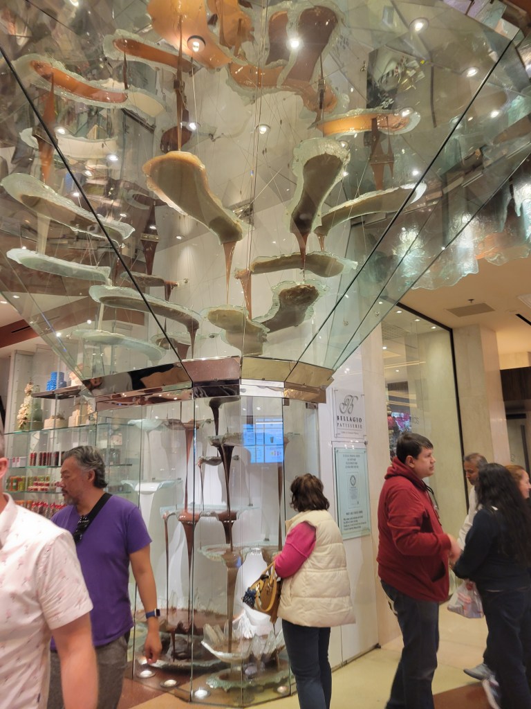 I flew in on a Friday and walked around Vegas for a couple hours just to say I saw it in person (wow, that Sphere is cool!). One of the casino hotels Drew recommended me to see, had this incredible Christmas display set out. I was in awe, along with hundreds of other people wandering around the room. Look closely, it’s flowers… wow. Then, of course I found a chocolate waterfall in my wanderings. I don’t even recall where I was at this point.