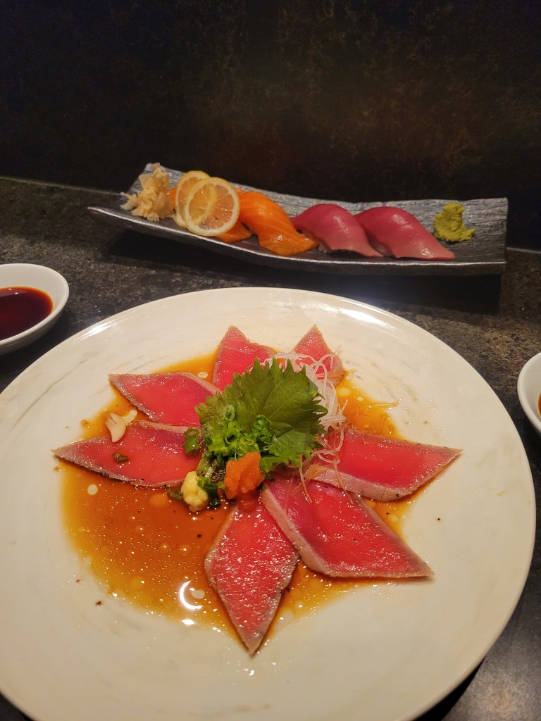 The next morning, we took Brayden to the airport and went to Disney Springs for some light shopping before going back to Epcot. With the reservation system at Disney, annual passholders still have to make “reservations” for the park, or come after 2pm. We made dinner reservations at the sushi place in Japan since we had never eaten there. I must say, that was the best sushi I’ve had since I was in Tokyo! Delicious!! I had to have the tuna appetizer and then we just kept ordering Nigiri rolls until we felt content. We sat at the sushi bar-top so we could watch them work, but it wasn’t a great view. However, once the food started coming out, I was thoroughly entranced by our spread. Yum!!