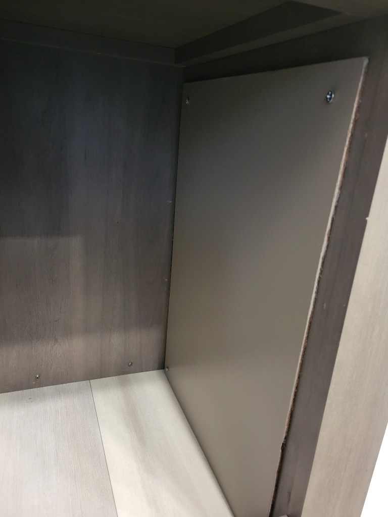 So, I moved things around in the front compartment, undid the screw that held the ‘wall’ to the electrical area separated, and opened up the area the Camperland said I would never have to go into.