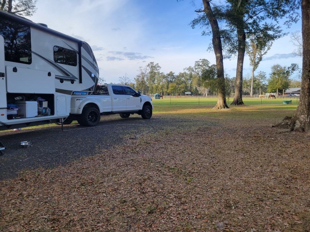 The first night, we stayed at this beautiful ranch in Hillard, FL, The Ranch at Trader’s Hill. There was originally just an aquaponics farm there, when another family came down and wanted to have horses. That idea grew into a full equestrian center, where people can bring/keep their horses, take lessons, and so much more. We were able to park behind one of the larger paddocks at the edge of the property and were the only ones there, so our view was gorgeous out both sides of the camper. We left the next morning and had to take some tight two lanes highways back to I-95, but we would definitely stay here again.