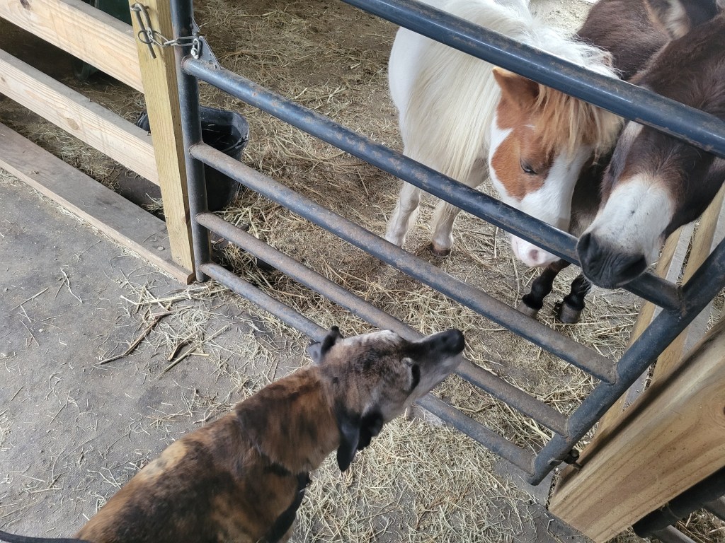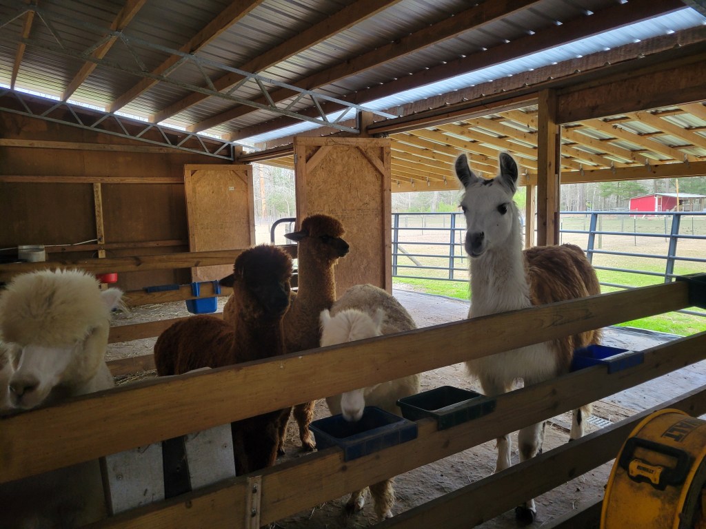 Then, we went in and met the alpacs and their body guard, Bert, the llama. We learned all about alpacas and some fun stories as well. Apparently, when they are trimmed, they are at least 6″ skinner on every side!! Tigger made nice with Tillie and Eddie as well.