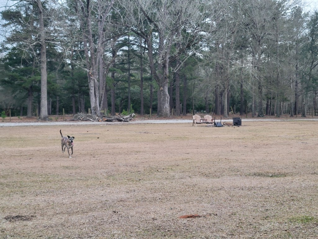 We thought it was going to be a nice quiet night on the farm, like we’ve had at every other farm. It wasn’t. Remember the Cottageville Hwy I mentioned, just on the other side of this farm? Well, it was a Friday night and apparently that is when the local hooligans (drag racers) run their races and random times throughout the night. Thankfully, we travel with a sleep aid fan, so that drowned out some of the noise. I feel bad for Bill!