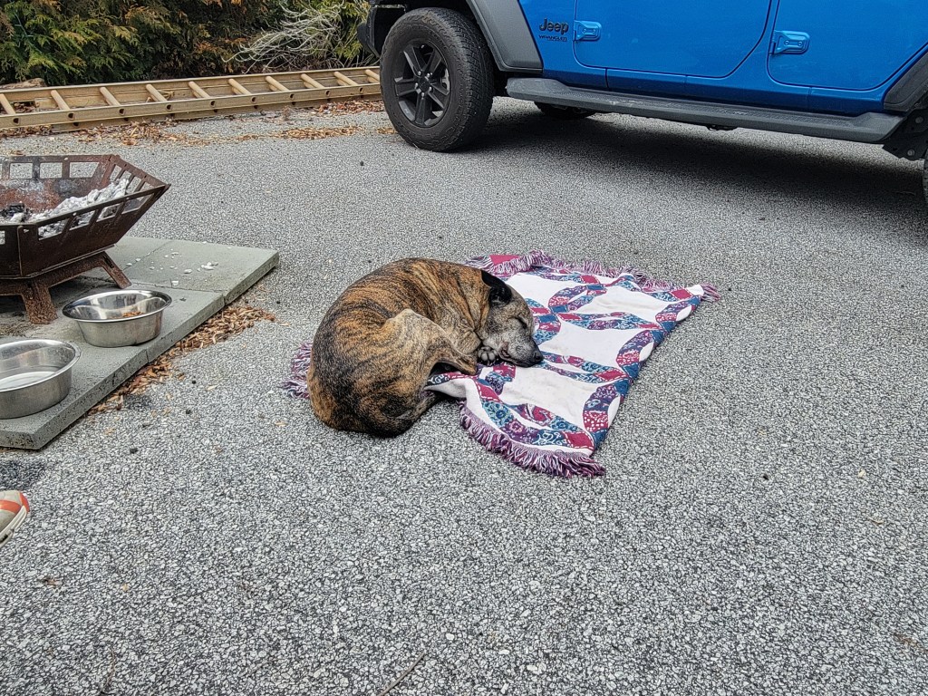 Day 2, we found a rest stop halfway between our locations, and pulled over for a relaxing lunch. Wow. While it’s not hard pulling the rig, it’s draining mentally. I think even Tigger appreciated being out of the Jeep!