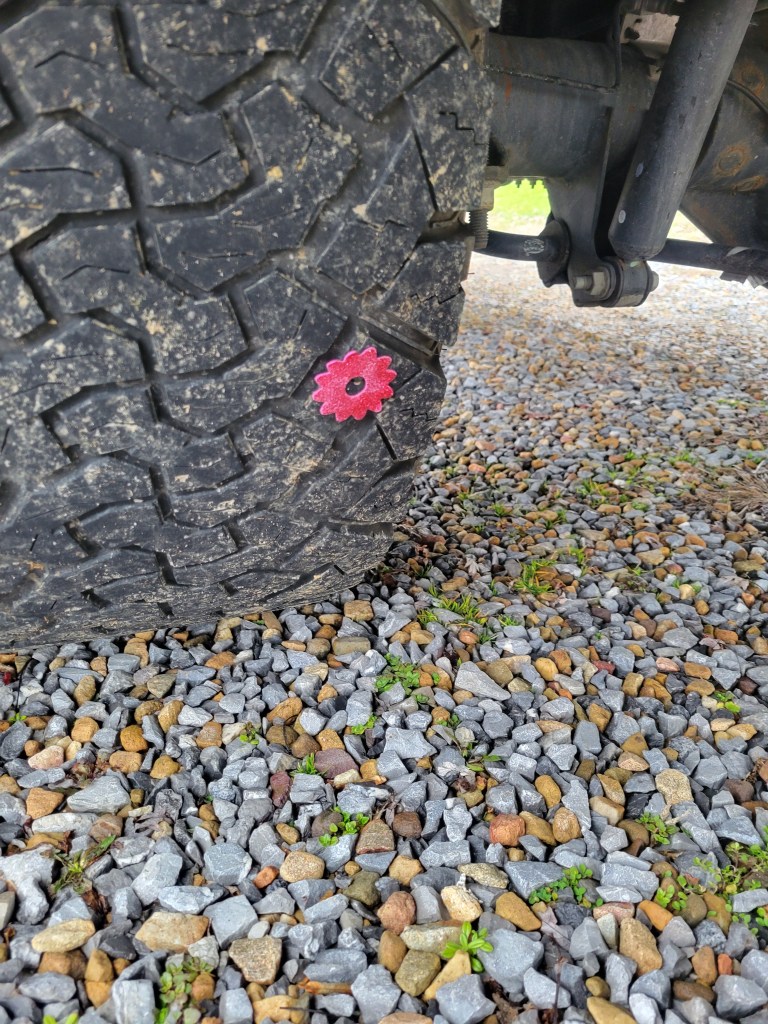 Thankfully, Johnson City, TN was just over the mountains and we were able to pull into our last stop. We had stayed at this campground in the fall, so we were familiar with the setup. After a slightly stressful couple of days, I about lost it when I saw what I thought was a nail in my tire. You know how roofing nails have that plastic piece around it? Well, I saw a pink circle thing around something IN MY TIRE TREAD. Omg, these tires are $600 each. I was done with today. At a closer look, it was a child’s sticker. Not amused. I need a beer.