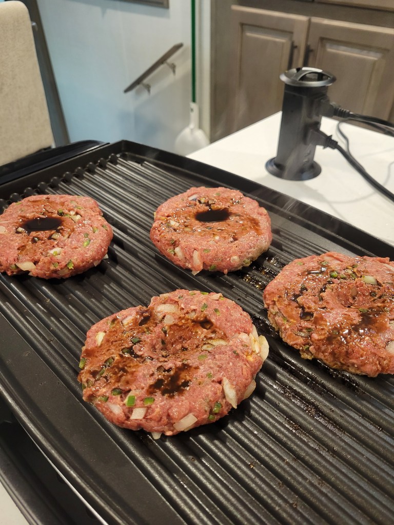 We took our regular burgers and sent them to private school (as Mo says). After finally perfecting our recipe, this is a huge family favorite of ours – simple, basic, and easy. Naming credit goes to Mo on this one! This recipe makes 4 burgers.