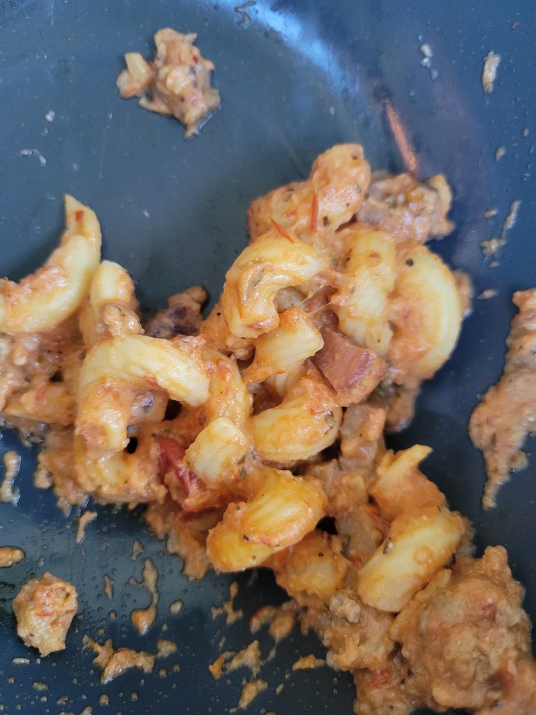 The noodles: I started off using elbow noodles, then moved to rigatoni noodles, and have settles on cavatappi noodles. I like the swirly shape and think it brings depth to the dish. Par-boil enough for your family, in a simmering pot of water with a little olive oil and salt. I use a half a regular box, which makes 5-6 servings.