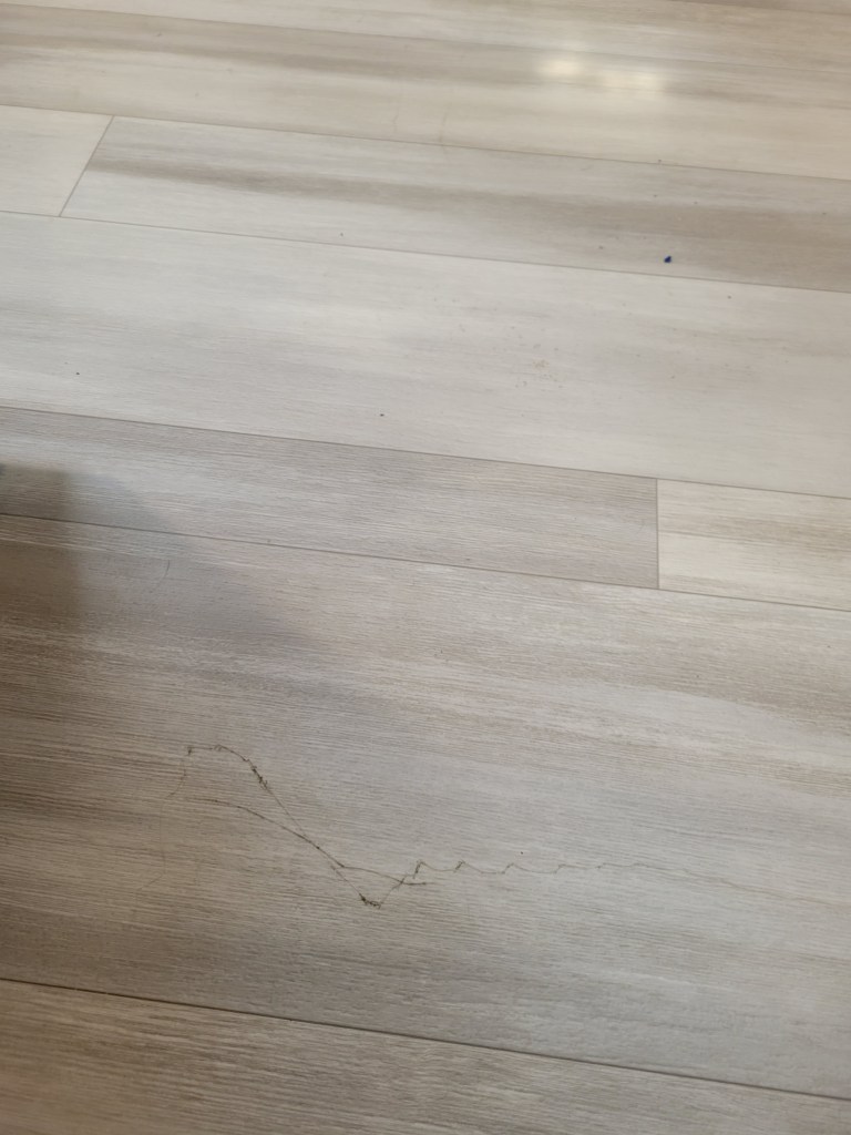 We were very excited to get our new fridge in November since we had been using a fridge literally 1/20 the size for 10 weeks. However, when the techs pulled out the old fridge, they didn’t unscrew the back screws, thereby scraping our beautiful new floor.