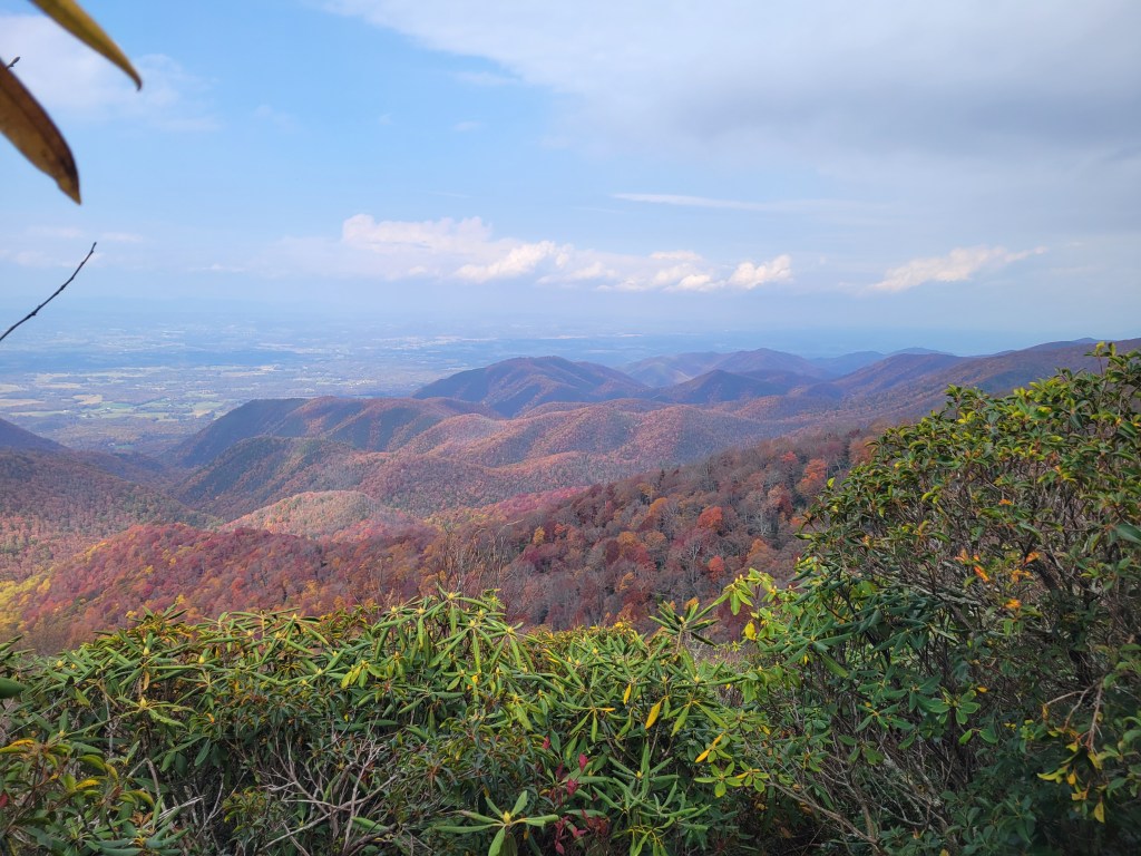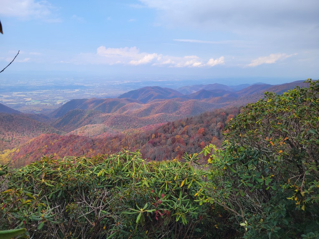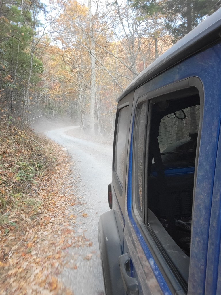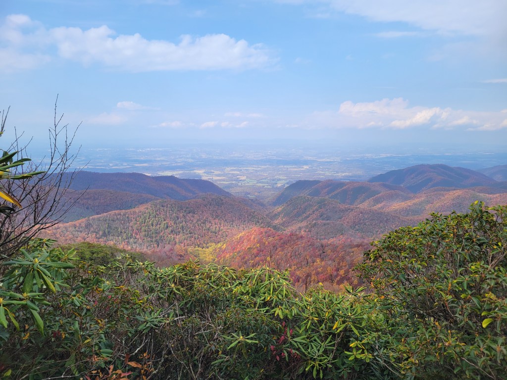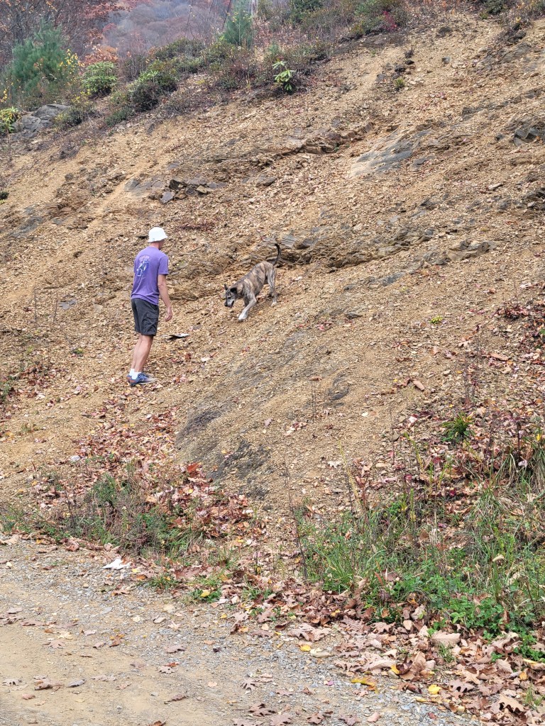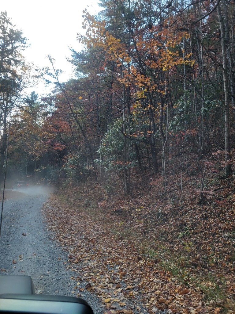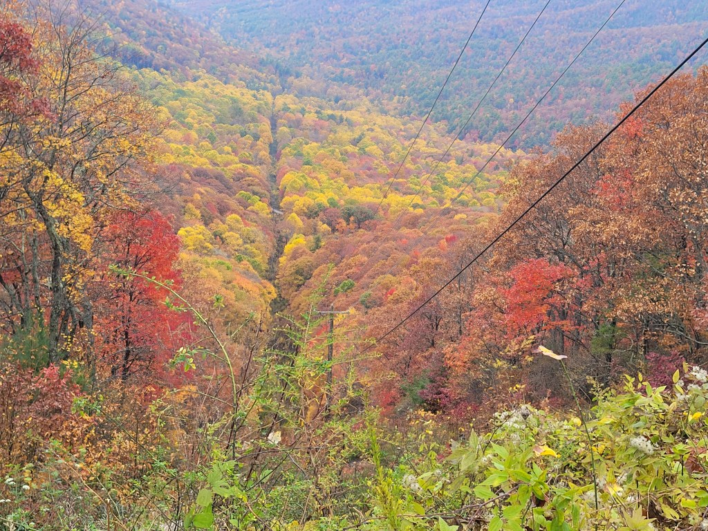 At the top of the mountain, there were once contraptions where ski lifts made trips more than 30 years ago. Now all that is left are concrete slabs and beautiful views. The road ends at the top, but we found we could hike about a half mile out to a huge cliff. Putting that on the list for another day, for sure. Tigger and I ventured into some underbrush, down from where the ski lefts were, and discovered the most beautiful view down the mountain looking back toward Greeneville. The pictures don’t do the view justice, but to see the colors as they flowed down the mountain like water was an experience that felt God-touched. Incredible and awe-inspiring.