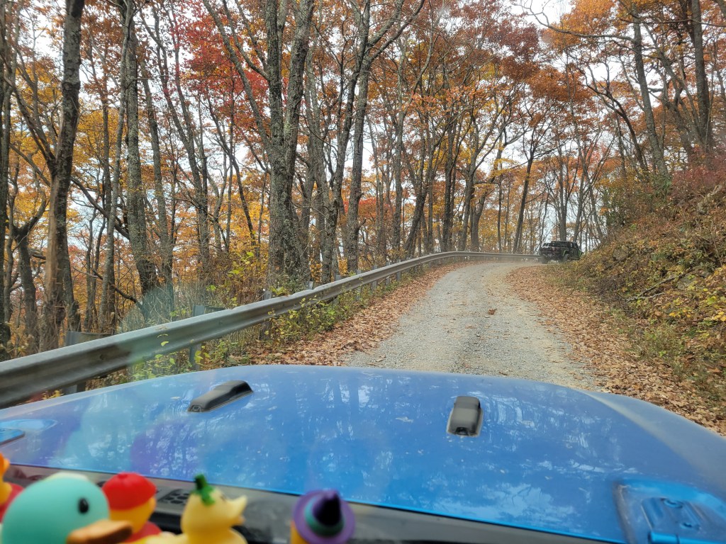 We gathered up some friends, the dogs, and the Jeeps and literally took a road 1/2 mile from us up into the mountains. Green Mountain Rd is this wider than one lane, but not quite two-lane road winding around the mountains to Viking Mountain Rd that feels like it runs along the peaks. Pearl definitely would not have handled it well, but the Jeeps were built for these gravel roads. Our friend has a Jeep built for climbing mountains (like really climbing mountains), so this was a good road for our stock Jeep.