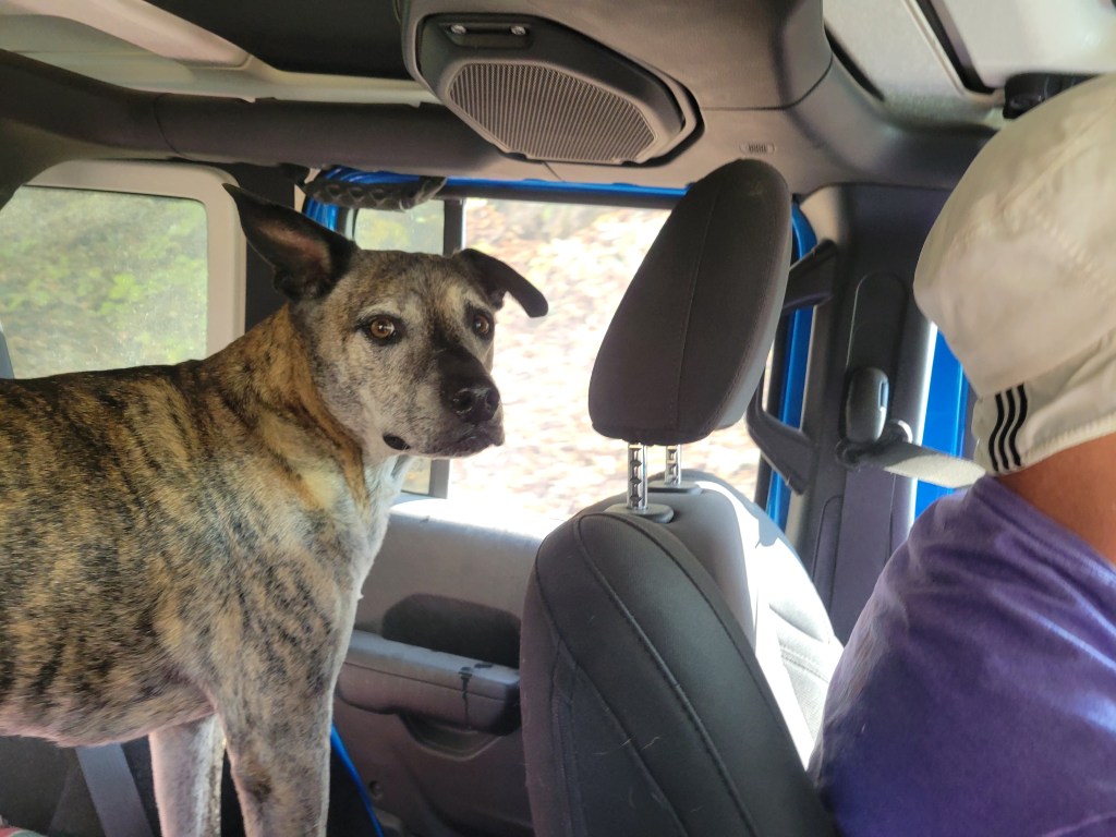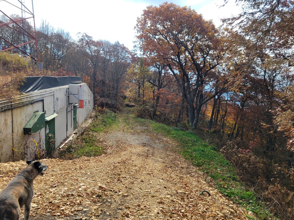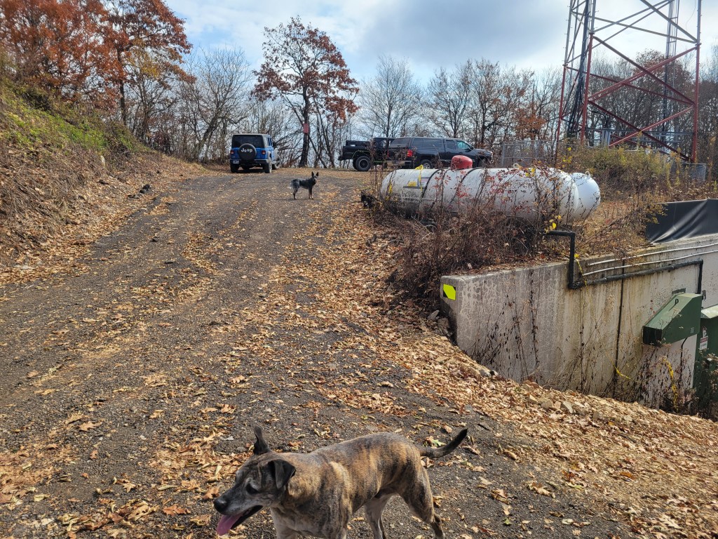 We found another side-road and ventured out to find a seemingly abandoned fire watch tower and cell tower. We probably shouldn’t have gone up that road, but the gate was open! Tigger loved exploring each time we stopped and fully marked the mountain as his. Well, until his buddy Rosco also marked the mountain as his.